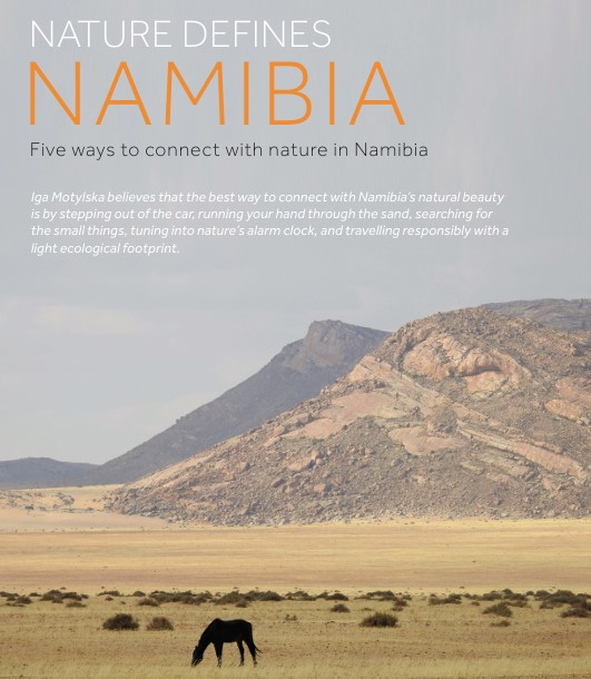 The best way to connect with Namibia’s natural beauty is by stepping out of the car, running your hand through the sand, searching for the small things, tuning into nature’s alarm clock, and travelling responsibly with a light ecological footprint, writes Iga Motylska.